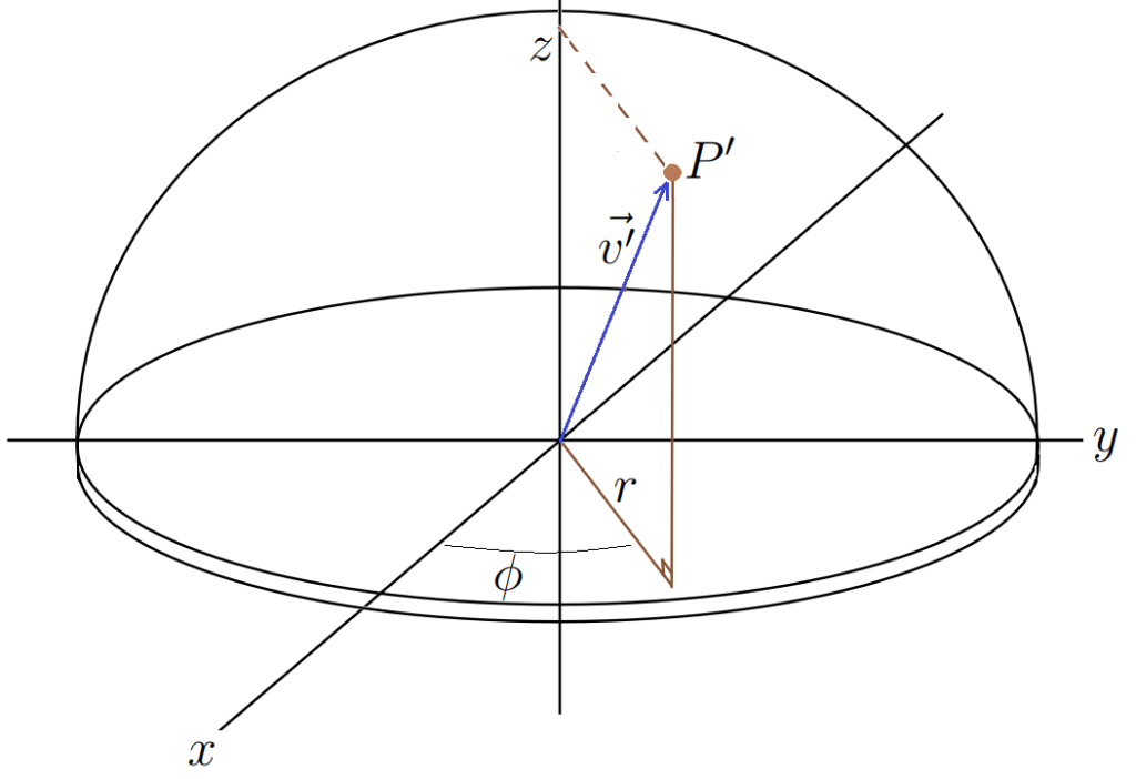 The coordinate parameter is the same as in the spherical case, the parameter r is the distance from the z-axis, and z is the vertical position measured by the z-axis. The radius of the round earth and the radius of the flat earth are denoted by